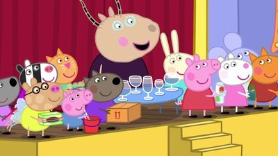 It's Grandpa Pig's birthday and the family go out for a celebratory meal. Peppa has never been to a restaurant before.