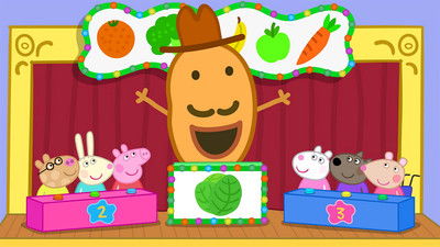Peppa and his friends are at school and have a special guest, Mr. Potatoes. Mr. Potatoes is there to give them a fruit and vegetable test.