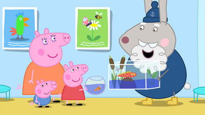 Peppa and his family are taking Goldie the Fish to Dr Hamster for a checkup. Dr. Hamster recommends that he get more exercise, and Grandpa Rabbit builds something to help him.