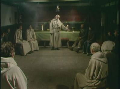 Charles, Jenny and Hubert arrive at a settlement based around a working mill. The community there has been influenced and led by former personnel headhunter Frank Garner (Edward Underdown) and Rutna, a young Indian woman. Their guiding principle is the belief that man died (during 'the death') and now needs to be re-born to a new way of life. Frank makes several failed attempts to speak to Charles alone and is clearly uneasy about something. When Charles, Jenny and Hubert's horses are poisoned with yew branches they have no choice but to stay another day...