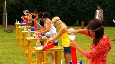 The four remaining couples learn their new objectives. The geeks must teach a fitness class, while the beauties must successfully build a go-kart to send down a racecourse.