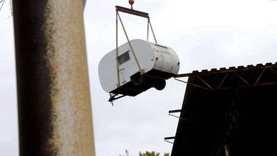 The crew works on a 1958 Mercury Turnpike Cruiser that's seen better days. Mobsteel steps up its advertising after striking a deal with the Detroit People Mover.