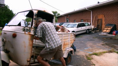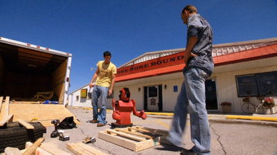 Roy, the "Handyman", busts out some serious loading skills for a dining table made from a 57 Chevy and a huge, vintage penny arcade sign. Chris and Robbie pull their heaviest load to date--a giant, ominous-looking, nuclear missile.