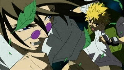 Kagami witness the return of Masaki Kurusu, master of light, in the Limitless Fortress. Sakura is seen being attacked by Kaoru Ujiie, master of fire. Himiko sees her injured and takes her to the Honky Tonk cafe. She tells Ban, Ginji, Himiko, and Hevn that MakubeX has been kidnapped. It is shown that Makubex was creating a program to download data from Lower Town into his computer system, to ensure peace in Lower Town and prevent any wars from happening. However, it is assumed that Masaki is responsible for kidnapping Makubex. Moreover, all the data download has been erased, and the computer system is heavily damaged. Ginji realizes that Kaoru was responsible for attacking Sakura, as there is an insignia on her arm. Masaki visits Gen in the pharmacy, as he is aware that Gen was one of the architects of the Limitless Fortress. Masaki hints that he has Makubex captive. Ren, being depressed for being an illusion, is sitting outside the pharmacy, wishing to see Kazuki again. Toshiki Uryuu,