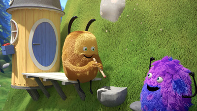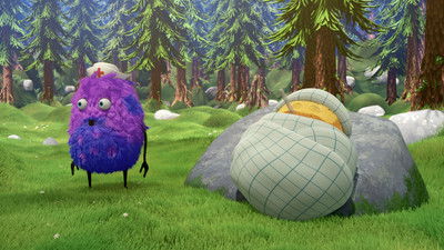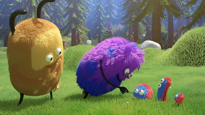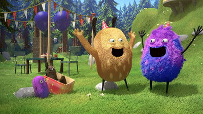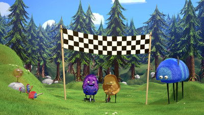 The funny and furry little creatures Kiwi and Strit live in a clearing in the forest. The two are very different – Kiwi is considerate, careful, and yellow, while Strit is wild and purple. Their approach to almost everything is different, but they are both playful and curious, and together they have a lot of fun when they play football, race on their bicycles, and when they find a noisy cow.