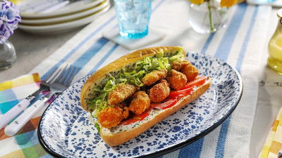 Kardea Brown creates a hearty meal for her brothers working at Charleston's major port; the menu includes fried shrimp and okra po'boys, lima bean hummus, potato salad and brown butter sesame crispy treats.