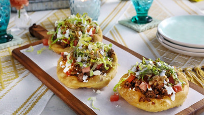 Kardea leans into her freezer and pantry to prepare a full, fresh, delicious and hearty meal; she makes a Salad Bar Salad, Chicken Pot Pie Stuffed Biscuit Cups, Corn Soufflé with Jalapenos and Semi-Homemade Chocolate and Caramel Shortbread Bars.