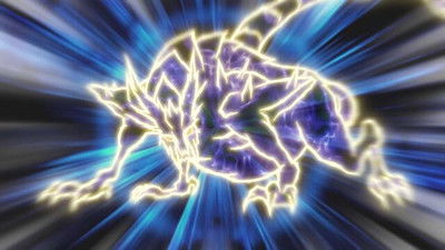 After introducing himself, the Yliaster trio's duel runners combine to form Aporia's duel runner. Aporia then combines with it in such a way, that the audience are shocked to the point that they begin wondering if he was human at all. Aporia then activates the continuous trap card, Infinite Prison, so that by sending the trap, Infinity Force from his hand to the Graveyard, he can treat Grand Core as a spell card from the graveyard, and then set it face-down in the face-down zone. He then destroys Infinite Prison in order to add Sky Core, Wise Core, and Grand Core to his hand, which had been set face-down. Next, Aporia sends the 3 Machine Emperor Cores to the graveyard, in order to activate the trap card: Genesis of the Machine Emperors, which allows him to special summons his ace monster, Machine Divine Emperor Mechanicle Infinity Cubic. Then, he causes his Machine Divine Emperor to shoot energy into the sky, which results in lightning striking all over New Domino City.