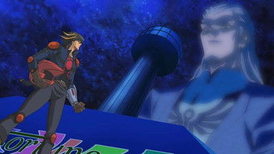 The Fortune Cup Finals continue as Yusei summons Stardust Dragon to battle Jack’s Red Dragon Archfiend. As the battle goes on, the Crimson Dragon appears and Goodwin, revealing that he is the fifth signer and has a severed arm in a tank with the final Signer Mark shows Yusei, Jack, Akiza, and Luna bizarre visions of the People of the Stars and the future of New Domino City, being engulfed in a Spider shaped geoglyph of fire.