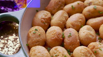 Molly Yeh is bringing big tastes to the big game! Her fun and filling menu teams a Corndog Hotdish with her Fried Green Beans with Spicy Ranch Aioli and tangy Pickle Roll-Ups. For overtime, she whips up a Sweet Cheese Ball that can feed a crowd!