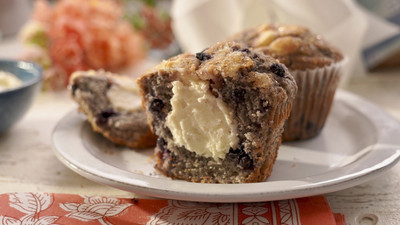 Nick's parents are celebrating their 41st wedding anniversary, so Molly Yeh puts a twist on foods they've enjoyed through the years. She does her own take on Tofu Schnitzel, Bean Soup with Challah Crouton and Crispy Roasted Brussels Sprouts. Plus, Molly blends sweet and savory flavors with her Jumbo Blue Corn Blueberry Muffins.