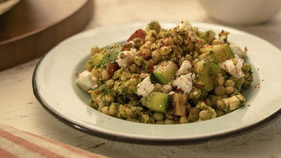 There is one small section of time between harvest and planting when Nick is available for date night, and tonight's the night! Molly Yeh packs a picnic dinner complete with Meat-Stuffed Pitas with Yogurt Tahini Sauce, Couscous Salad with Pistachios and Dates and Cold Curried Cauliflower. Then, they'll enjoy the best view in town as they snack on Fizzy Rock Potato Chips.