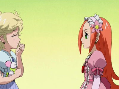 The final test of the Queen selection starts! The test is to obtain a unicorn's horn. However, it is unapproachable unless the person has a kind heart and sincerity, then the white unicorn will appear. Approaching to the mountain where the unicorn lives, both of the girls met a boy with light hair, who takes care of the mountain. He gave Chocolat a compass and runs away. Upon reaching the mountain, Chocolat and Vanilla go separate ways, but eventually meet each other on the journey. Pierre appears, but he doesn't have the heart to kill them at all. After fighting with his two hearts, withdraws. The boy with light hair appears and scolded the girls for harming the mountain, admoishing the girls to leave as the unicorn would surely punish him for it. However, Chocolat insists to staying (Vanilla as well), willing to take what punishment the unicorn would impose. And the boy begins to glow...