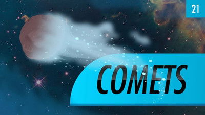 Today on Crash Course Astronomy, Phil explains comets. Comets are chunks of ice and rock that orbit the Sun. When they get near the Sun the ice turns into gas, forming the long tail, and also releases dust that forms a different tail. We’ve visited comets up close and found them to be lumpy, with vents in the surface that release the gas as ice sublimates. Eons ago, comets (and asteroids) may have brought a lot of water to Earth -- as well as the ingredients for life.