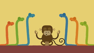 The snakes got tangled up and knotted together while meditating. Can the ape master help them?