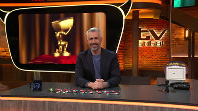 TV total is a German late-night television comedy talk show. The set of TV total includes a floating interview stage that can be moved from one studio corner to the other. The show featured buttons with sounds and clips before Craig Ferguson's The Late Late Show.