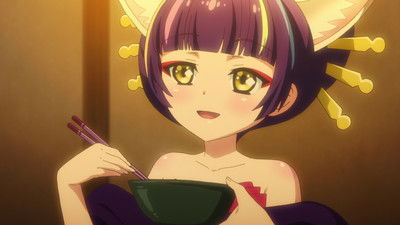 Tsurezurenaru Ayatsuri Mugenan show up on Tokiko's show, where Tokiko seems amused by Darudayu's daruma form.