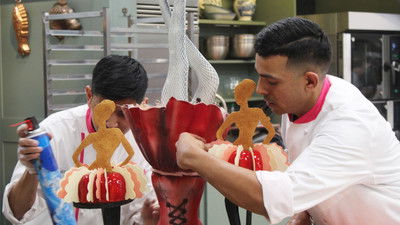 Teams of professional pastry chefs do battle in the kitchen.