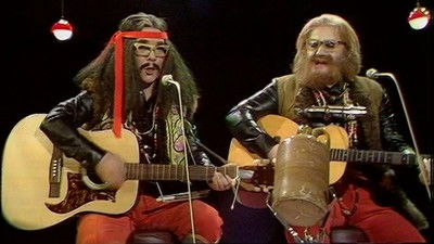 The main sketches are Ronnie B meets the bald Mr Goldy, the Hampton Wick episode is Street of Shame, we hear about a lorry driver, Tarzan visits Ronnie C., and W.S. Gilbert and Arthur Sullivan are 'In Concert'. The musical guests are New World and Tina Charles, and Jo, Jac & Joni perform a vaudeville routine.
