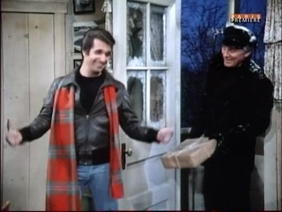 Fonzie receives a Christmas gift from his father but is reluctant about accepting and opening it. Meanwhile, Richie and Lori Beth argue about what they've spent on each other's gifts, and Joanie is upset at Howard for getting an artificial tree.