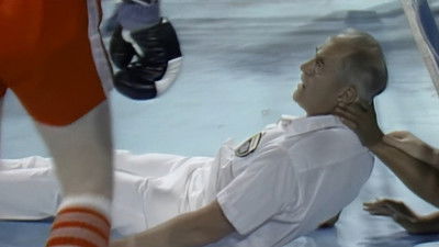 Starkville, MS – Mississippi State vs. Alabama NCAA football game. As parachutists enter the stadium #2 Bill Wasser makes a low turn and crashes hard in the end zone and flips over. A meeting turns violent; a referee is knocked out by a boxer; an air guitarist suffers an injury via a chair; an in-line skating misstep
