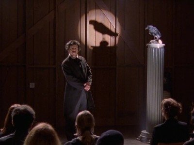 When a meeting of the Edgar Allan Poe Society at her inn is interrupted by a disaster, Lorelai must find rooms for the guests at homes around town.