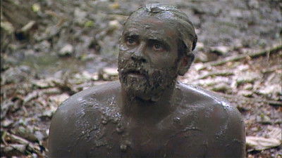 The number of contestants is whittled down to the Final Four after the players compete in “Witch Hunt” for Immunity. The castaways are each given a video camera and must search through the jungle for hand-carved masks and answer questions on the back of them. For a Reward---a night at a bar with a hot meal and a cold beer---the tribemates see who can collect the most mud on their bodies and transfer it to a designated area in a given time.