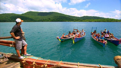 One castaway is pulled from the game due to a family emergency. Also, Tribes drop their buffs and switch it up for the second time, and castaways chow down on local delicacies in a classic immunity challenge.