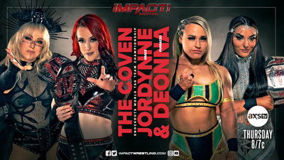 This week's edition of IMPACT! from London, Ontario features a tag team showdown pitting the team of former World Champions Moose & Rich Swann against the pairing of Nick Aldis & Jonathan Gresham. X-Division Champion Trey Miguel goes one-on-one with Bhupinder Gujjar. The Knockouts Tag Team Titles are on the line as The Coven defend against the Death Dollz. Sheldon Jean will have Kenny King in his corner when he battles Digital Media Champion Joe Hendry.