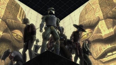 The disguised Obi-Wan accompanies Cad Bane and Moralo Eval to Serenno, where they enlist in a brutal competition with other bounty hunters from around the galaxy to determine who will participate in a plot to kidnap the Chancellor.