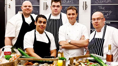 Chefs battle for the chance to cook a banquet at the Olympics. Newcomers Phil Howard, Graham Garrett and Marcus McGuinness cook their fish course.