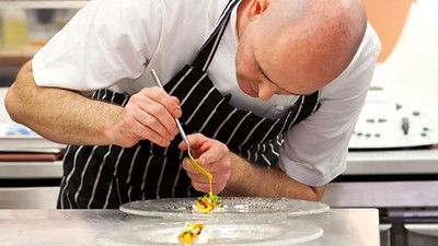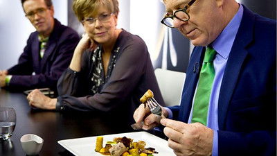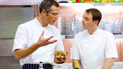 Chefs battle for the chance to cook an Olympic banquet. Scottish chefs Alan Murchison, Colin Buchan and Mark Greenaway hope their main courses will get top marks.