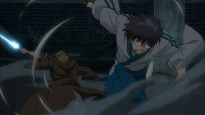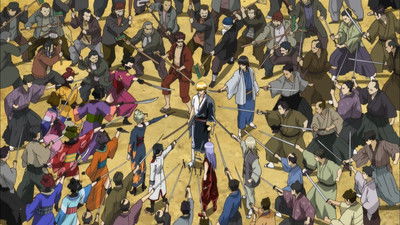 Just when it looks like all is lost, the Shinsengumi and Mimawarigumi arrive to lend their aid to our heroes. Sadasada attempts to escape but Gintoki is hot in pursuit.