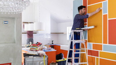 Brian transforms a radio executive’s basement into a cool and colorful space where her two teenage children can relax. He increases the finished basement space by turning an adjacent room into an elegant home office.