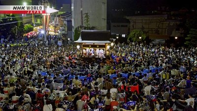 The Gujo Odori, one of Japan's largest Bon dances, is a spectacle with the scores of revelers, as well as the live festival music and clacking geta wooden clogs. For more than 400 years, it has been held for 30 nights from July to September in Gujo-Hachiman, a village located deep in the mountains of Gifu Prefecture. The main event is the all-night dance for four days starting on August 13. French actor Robin Barde explores the deep culture of the festival and dances the night away.