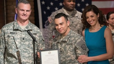 Drew takes action when a gunman attacks at a friend's promotion ceremony.