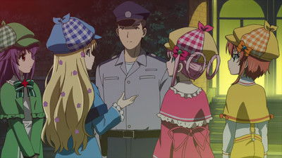 Alice and Kazumi decide to sneak into Holmes Academy for a chance to see Milky Holmes, where they end up getting inadvertently knocked out by them. As the two state their desire to be just like Milky Holmes, they simply respond by saying if they want it, they should just do it, whilst trying to keep up a classy image. Later that night, Alice and Kazumi encounter the thief from before, donning their new detective uniforms to fight against him. Whilst Kazumi's Arrow Toys prove to be ineffective, when combined with Alice's Barrier Toys, they combine into a powerful arrow that knocks the thief out. The girls leave the thief in the custody of the police, leaving behind a calling card naming themselves "Feathers".