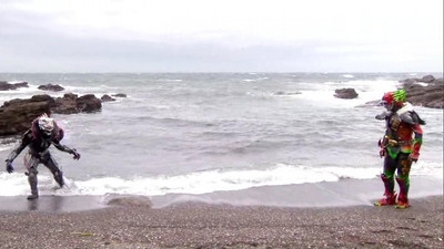 Gamel rampages throughout the city trying to revive Mezool with one of her core medals; Eiji washes up on the beach with the purple medals acting up, and before he can find his driver, Ankh shows up to stop him from turning into a Greeed; Gotou has his Birth driver back, but he's in trouble and Erika gives the prototype to a familiar face.