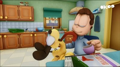 Eddie Gourmand, a food critic, is fired from his show only to be replaced by his station manager who wants to promote a healthier way of cooking. After a chance meeting in a movie theater, Jon invites him back to his house for dinner. But when Eddie injures his foot because of Garfield, he has to stay at Jon’s and orders him to take care of him until he is healed or else he’ll sue.