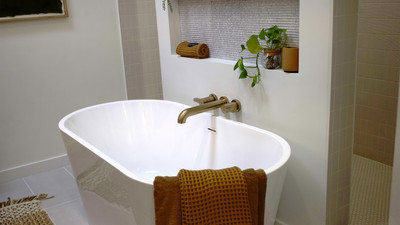 Brooke and Brice help a family freshen up their dated bathroom.