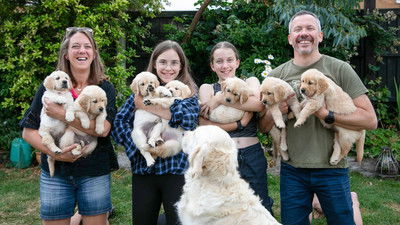 Meet guide dogs in training, and their owners, including a 16-year-old Paralympic skiing hopeful, and a six-year-old Golden Retriever who's part of Guide Dogs' breeding program.