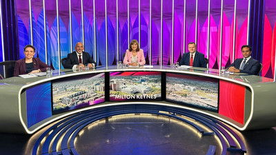Fiona Bruce presents an hour of debate with politicians, commentators and members of the public from Aldershot in Hampshire. On the panel: from the government, secretary of state for science, technology and innovation Peter Kyle MP; Conservative Party co-chair Nigel Huddleston MP; tech entrepreneur Alex Depledge; and columnist and broadcaster Sonia Sodha.