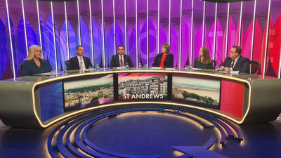 Fiona Bruce presents an hour of topical debate with politicians and members of the public from St Andrews in Fife. On the panel are: from the SNP, the Scottish government’s cabinet secretary for social justice, Shirley-Anne Somerville MSP; the leader of Scottish Labour, Anas Sarwar MSP; from the Conservatives, shadow Scottish secretary Andrew Bowie MP; Thomas Kerr of Reform UK; and the broadcaster and commentator Lesley Riddoch.
