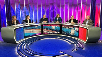 Fiona Bruce hosts a live debate with politicians, commentators and members of the public from Llandudno in north Wales. On the panel are: from the government, justice minister Alex Davies-Jones MP; leader of the Conservatives in the Welsh Senedd Darren Millar MS, Llinos Medi MP of Plaid Cymru; Telegraph columnist Annabel Denham; and former trades union leader Mark Serwotka.
