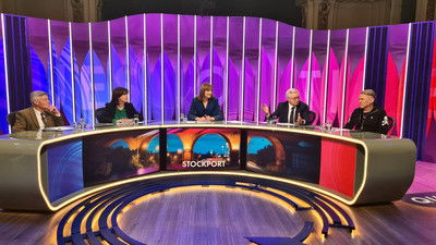 Fiona Bruce presents topical debate with politicians, commentators and members of the public, from Stockport in Greater Manchester. On the panel: from the government, leader of the House of Commons Lucy Powell MP; senior Conservative politician David Davis MP; green energy industrialist Dale Vince; and writer and broadcaster Matthew Parris.