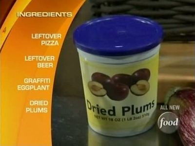 It's a leftovers extravaganza! In this special competition, every basket contains some "leftover" ingredients. For an appetizer, the chefs race to make something fun and tasty out of slices of leftover pizza. A takeout container holds a surprise in the entrée basket. The final two chefs shock the judges with their cold refried beans dessert creations.