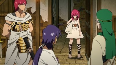 By capturing the dungeon Amon, Alibaba realizes his dream of becoming wealthy, but there's no sign of Aladdin, who finds himself among the once-great Kouga clan. Held together by their leader, Baba, Aladdin perceives there is something special about them.