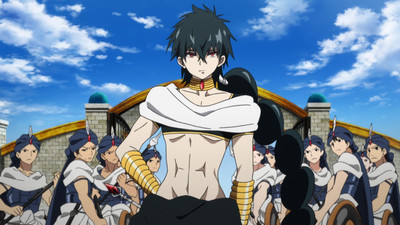 In Sindria, Aladdin and Alibaba begin training under two of Sinbad’s "Eight Generals," - Alibaba under Sharrkan, and Aladdin under Yamraiha. Two visitors arrive from the Kou Empire - the fourth prince, Hakuryu Ren, and the eighth princess, Kogyoku Ren…