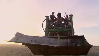 Out on the massive clay pan the boys are feeling the heat. They decide to make a shade roof out of palm leaves and a sled to tow behind. With their new roof and makeshift sled they head off once again.