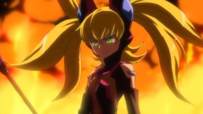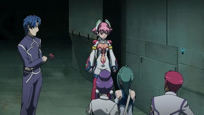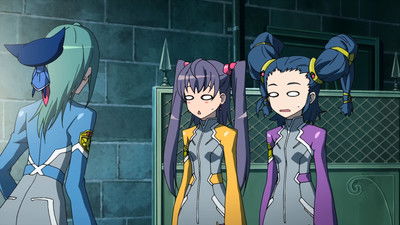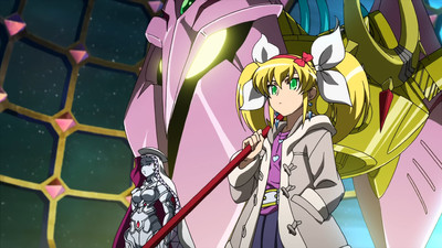 After recovering herself and dusting herself off, Akiha has it explained to her that there is a thief stealing Energizer Mirrors that Kazane and Takane suspect is an ally of Nerval. Because of the limited data and unknown resource requirements, Kazane directs Akiha and Imoko to school along with a promise from Takane to apprise of any new discoveries. While Honoka and Akiha change course to Leopard who is not thrilled with Sakura's attempts to entertain herself at his expense, it seems that there is something rotten in the Surre Academy Student Council as Aleida introduces Tsutsuji Baba to the AI entity Benkei along with there being quite a prologue between Aleida and Tsutsuji. As Benkei explains the Bisner Plan to Tsutsuji, Kazane manifests her displeasure at Akiha skipping school by lashing out at Nami who is incensed at being kept out of the loop with a stern "Stop whining and grow up already!" tirade before she and Takane make their exit. While out and about, Nami has a psychotic n